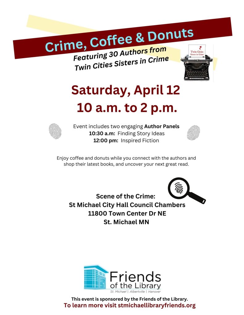 St. Michael, MN: Book Fair, April 12 Thirty mystery writers walked into a room and then… If you want to know the rest, come to the book fair on Saturday. Share this: Click to share on X (Opens in new window) X Click to share on Facebook (Opens in new window) Facebook Like Loading... Related Leave a comment Cancel reply Δ